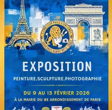 Exposition Peinture Sculpture Photographie, 30e exposition du Lions Club Paris Concorde, Mairie du 8ème arrondissement de Paris, PARIS, 9-13 février 2026.